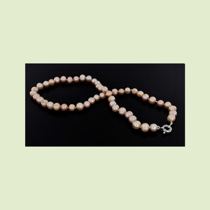 Colar de pérolas naturais, rosa, de cultura de água doce.