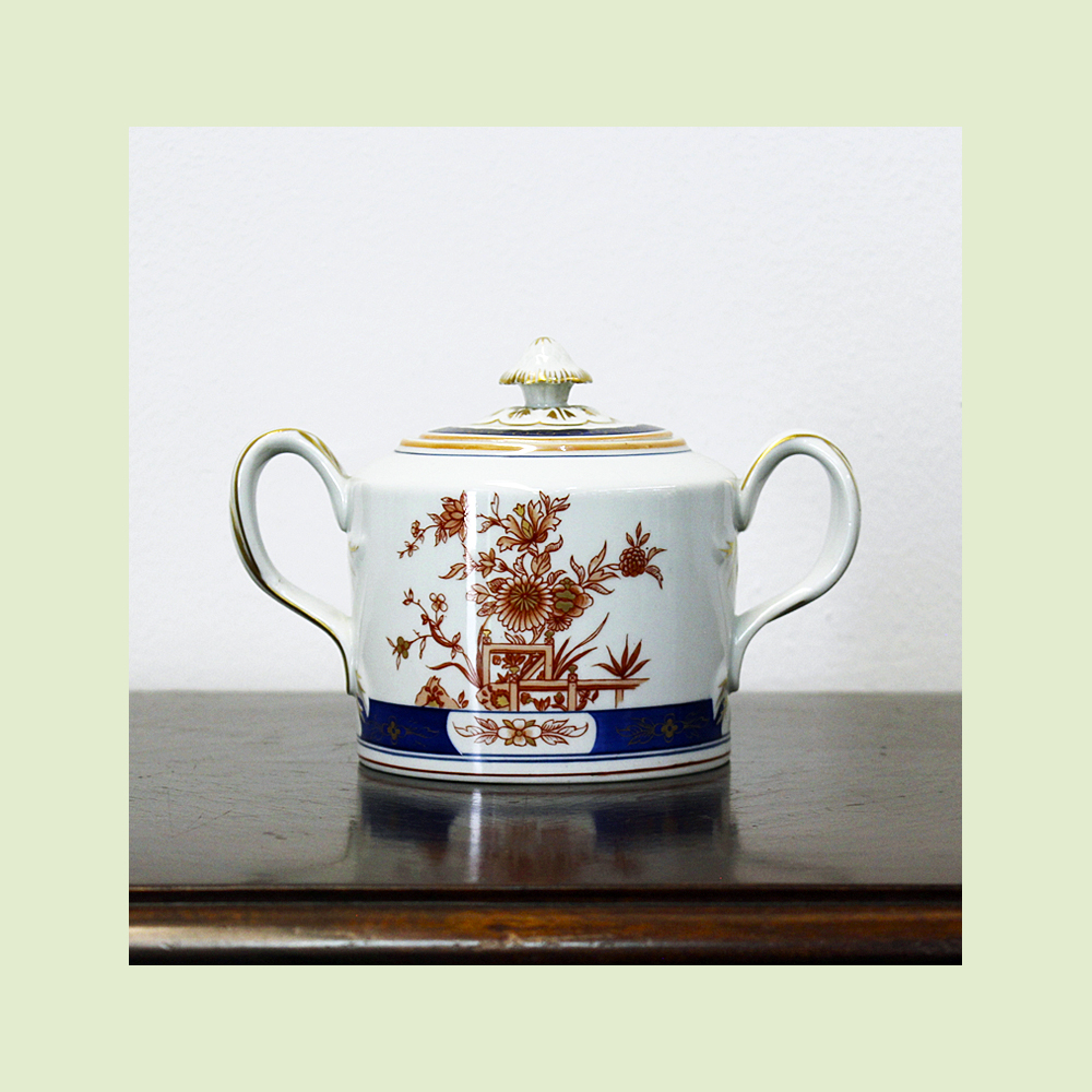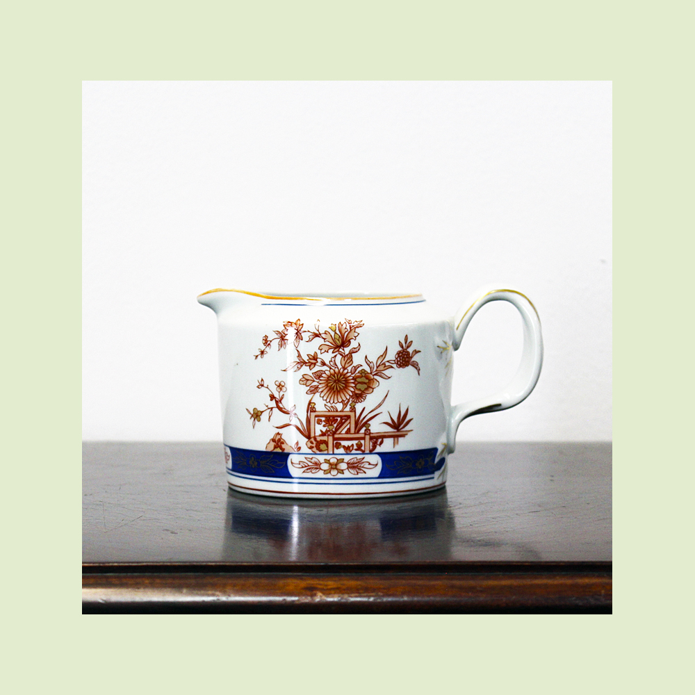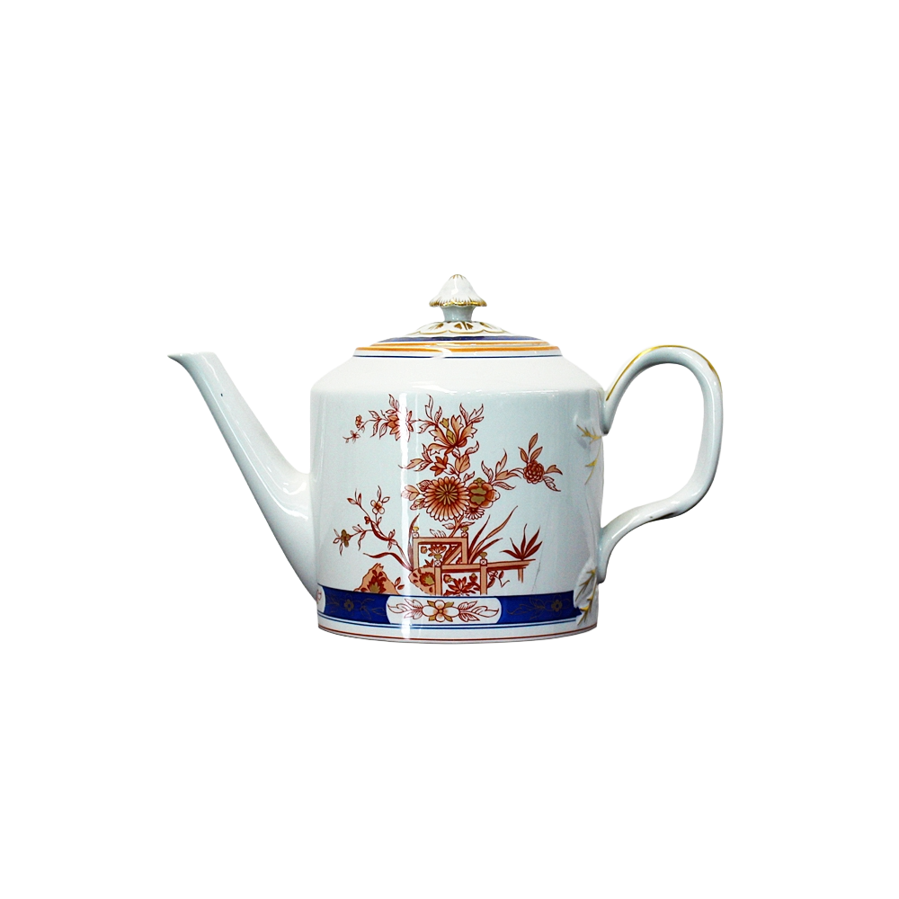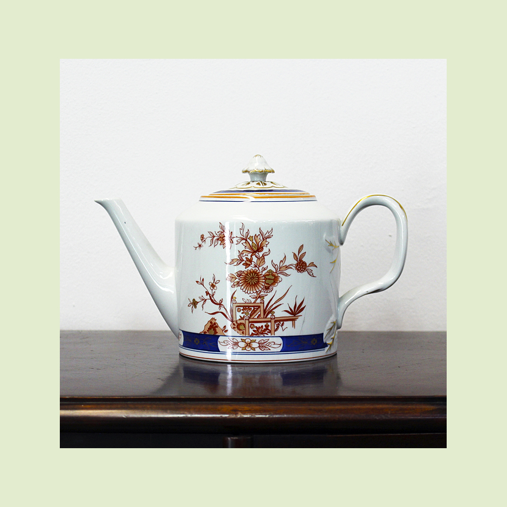 É composto por um bule, leiteira, açucareiro e prato de torta.