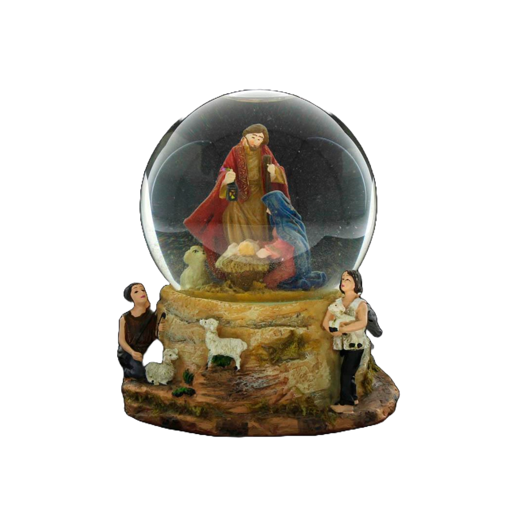Globo com presépio e música de natal,