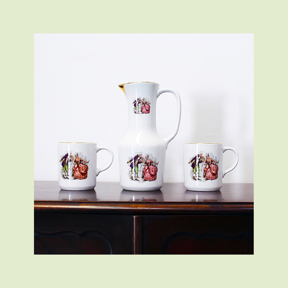Conjunto composto por jarro e duas canecas em cerâmica de Alcobaça.