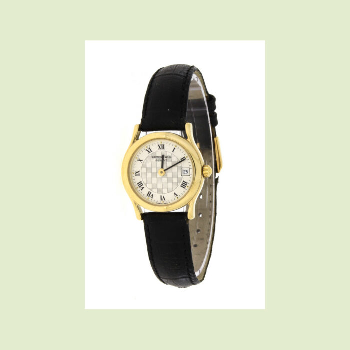 Caixa em aço dourado com 22 mm e bracelete em pele genuína.