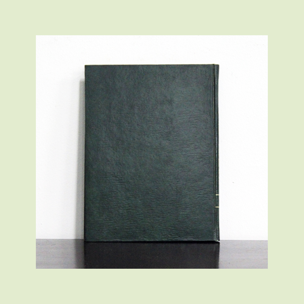 Encadernação cartonada em pele sintética verde, com ferros em ouro.